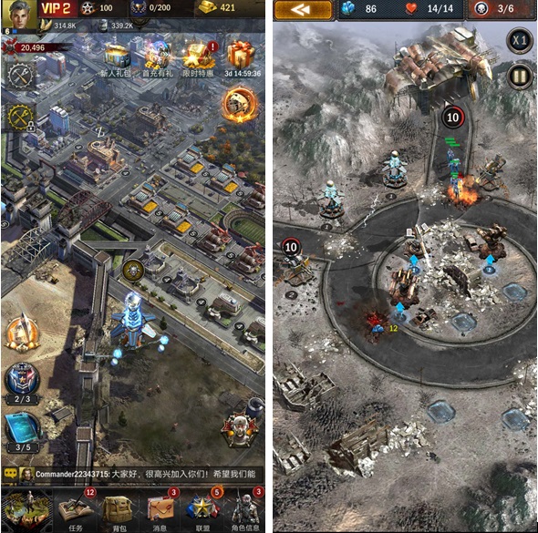 《Age of Z》的背景设定在近未来,整个画面科技感十足,这让它的美术与上述两者有了较为明显的区隔度。PVE玩法则是经典的塔防,玩家需在尸群抵达目的地前,在路线两旁放置武器击杀它们,并通过杀敌获取的点数放置或升级武器。