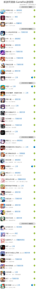 统计了2020年8月17日—年8月23日的最新手游开测信息,共有42款游戏开测。以下是开测信息: