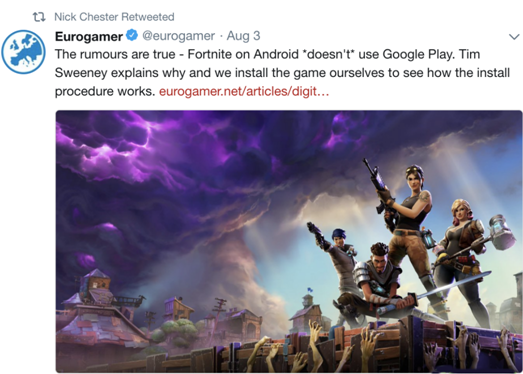 正因为如此,Epic Games另辟蹊径,决定引导安卓用户离开Google Play,转向其游戏官网下载游戏。由于安卓和iOS的系统特性不同,安卓允许用户直接安装第三方应用程序。Google或许将因此错失数百万美元。
