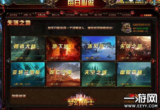 失落之地每天的挑战时间虽然只有20分钟,但是其中的怪物产出可是相当高的。平均下来几乎每个怪都会有掉落,而其中的精英怪更是掉落一大堆呢!如果你还嫌产出的不够多,那么你不妨在每天的2:30分进入,在接下来的20分钟里,是会每隔一段时间刷新一个“宝箱怪”的!打倒他,你会见识到真正的全屏“大爆”哦!
