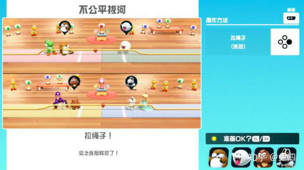 右侧是简单的文字介绍,左侧则是玩家们对应的屏幕,屏幕内就是该小游戏的试玩版,玩家拿着手柄就可以直接进行对应的操作。当所有玩家都觉得自己已经学会了之后,点击确认按钮,这时候才开始正式的比赛。