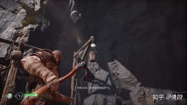 第二个让我惊艳的地方则是,当玩家控制奎托斯时,利维坦之斧是玩家跟场景物件交互的关键道具。玩家可以丢出斧头来跟场景里各种机关交互,通过投掷的频率、投掷时机、收回斧头的时机等等来进行关卡解谜。