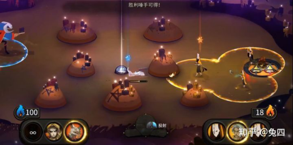刚接触到这个规则时我感到相当惊讶,竞技游戏一般讲究滚雪球,偶尔会有少量防止雪球滚得过大的机制。而《Pyre》却是直接让优势方在下回合立刻变成显著的劣势方(直接少了一个单位)。直到我完整地完成两三局游戏之后,我才发现这个设计的惊艳之处。