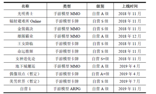但从近期世纪华通近期披露的重组草案中,记者获悉了盛大游戏未来2年的新品计划,不仅手游比重显著提升,自主运营手游产品线也迎来扩容。公告显示,盛大游戏未来2年时间内计划上线18款手游产品,其中11款手游采用自主运营模式上线,另外7款手游将代理给腾讯发行。