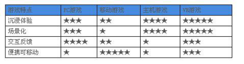 PC 游戏与移动游戏是目前我国游戏市场份额最大的两块蛋糕,它们经过稳定的发展,产品逐渐体现出“内容为王,渠道为主”的特点,正因如此,PC游戏与移动游戏为VR游戏提供了强大的内容基础与细分领域。比如,由PC与移动游戏市场经过产品转型而衍生的RPG(角色扮演类)、FTG(格斗类)、FPS(第一人称视角射击)、RAC(竞速类)、SPG(体育类)等类型游戏已成为目前VR游戏的内容主体。