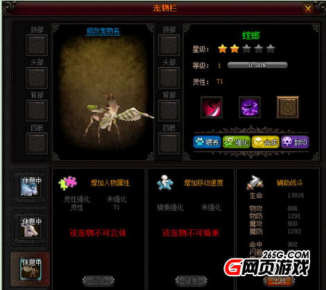 2.战宠技能分为攻击技能辅助技能和被动技能。