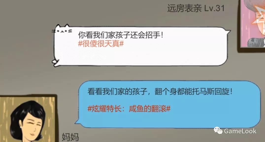 比如去年大热的《中国式家长》这款游戏,就重现了这种社会现象,父母希望子女一代要比一代强,从出生到高考能步步抢占先机、多才多艺,绝对不能输给隔壁老王家小孩。