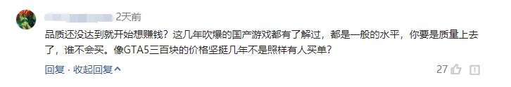 在评论中,有另一部分玩家则把矛头对准了国产游戏的品质和价格。