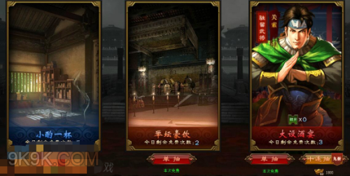 熟悉的酒馆里玩家们可以选择适合自己的方式进行招募,小酌一杯、举坛豪饮、大设酒宴,而且需要注意的是在武将驻留期间,招募还有几率得到驻留武将碎片。而很多人对于抽将的印象就是不断的氪金,而《龙腾战国》酒馆里的这三个抽奖方式每天均提供了免费次数,即使想额外抽,也只需用到绑定元宝,通过国战、秘境奇缘和限时活动等方式便能收获不少,完全不花自己一分钱,即可招募到诸多精兵强将。