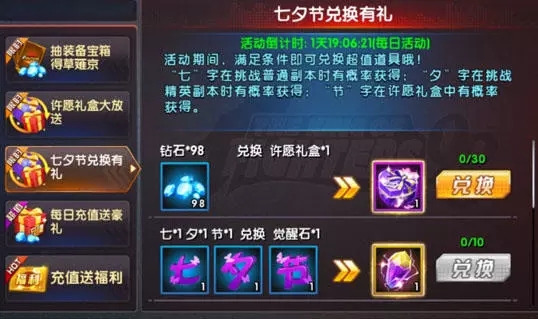 《拳皇98》七夕节活动,许愿宝箱除直接购买,还可通过玩法累计次数免费获得