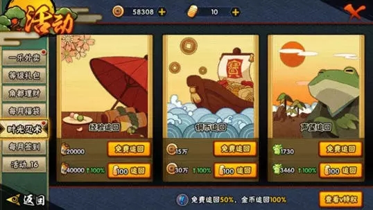 使回流用户有付费出口,充值不同额度可获得资源返利。