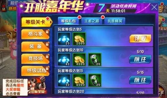 用户达到一定等级可领取礼包,一般等级间隔为5级。