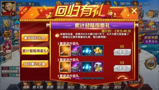 免费礼包内含经验、金币、体力、培养道具等常用资源,使用户一回流就“有事可做”。