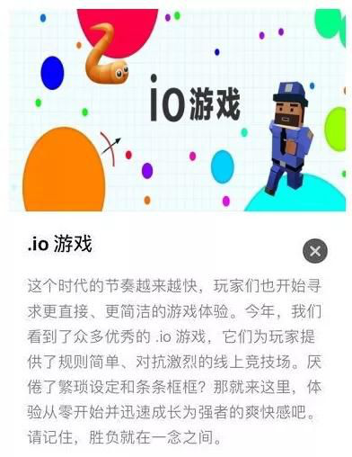 简单来说,这类游戏最早多在后缀为“io”的网站上发布,移植到移动端后,也保留了这个后缀。