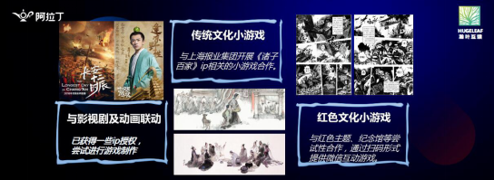 第二呢,我们正在开展与影视的互动,并不是传统的影游互动。比如说我们与《长安十二时辰》,在未来剧上映的过程中,会对它做一些前期预热,包括整个联动式的互动授权。同时呢我们也想尝试一下传统文化与微信小游戏的合作,因为我看过一个日本的数据,动漫、影视及游戏作品向青少年传达文化的效率是文字书籍的10-20倍。所以我们真的很希望将一些好的中国传统文化与游戏小游戏做有机的结合,将更多好的东西传达给年轻人。