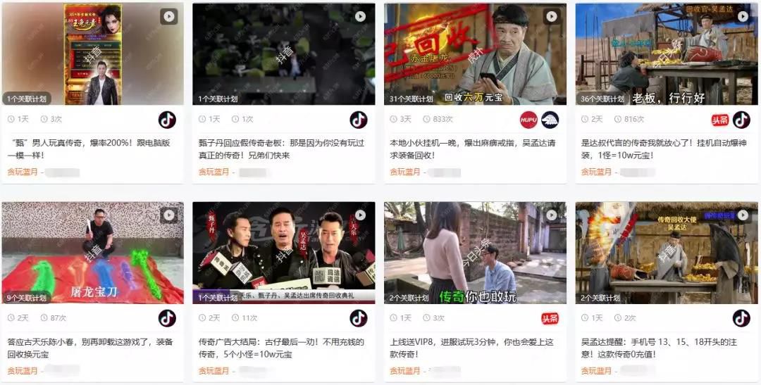 《贪玩蓝月》同样如此,这款游戏近三个月投放了1493组素材,其中有701组视频素材。