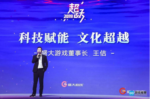 盛大游戏年会以“超跃2019”为主题,在上海上海静安体育中心举办。2019年恰逢盛大游戏成立20周年之际,又时值盛大游戏被并购重组的关键时刻,盛大游戏董事长王佶在年会现场发表了题为《科技赋能 文化超跃》的演讲。他认为,游戏天然兼具科技与文化双重属性,盛大游戏在20周年之际以科技+文化的全新定位,肩负起更伟大的使命:探索最前沿的互动科技,赋能文化品牌,升级大众的精神文化体验,掌握解锁全人类的快乐的钥匙。