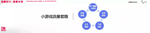 当然,市场上还有一些类似广点通的买量平台。其中,占比46%的是来自其他小程序之间的互相导量。这46%加上前面的25%自发式分享,相当于70%的用户获取基于平台本身内部消化。所以,如果资源好,团队是基本可以不付费获取到用户。很多游戏的厂商已经形成自己的矩阵,他们可以通过多款休闲类的游戏,向中重度游戏导量。也可以做多款不同游戏,游戏之间相互导量,让用户活跃在自己的产品矩阵中。