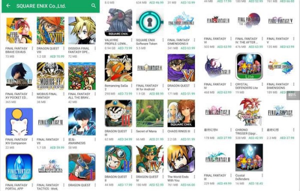 SE在安卓平台上架的游戏,当然,这个列表并未收录SE全部的移动端游戏