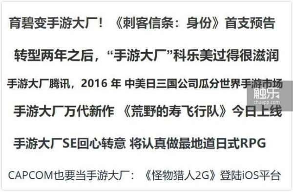“手游大厂”这个词差不多在2013年前后发生了转变,一些媒体开始称呼SE为“手游大厂”,这个用法最初可能还没多少讽刺的意思(和前面说的那些手游公司一样),但渐渐地它就滑向了贬义。在这个时期,你很难孤立地判断一篇文章中使用这个词时代表中性还是贬义,总要根据上下文才能猜测出它的真正内涵。