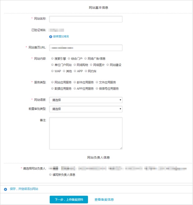 其他网站信息填写具体注意事项,参见主体信息和网站信息填写相关问题。