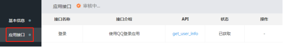 点击“应用接口”可查看已获取的接口,使用QQ登录功能。