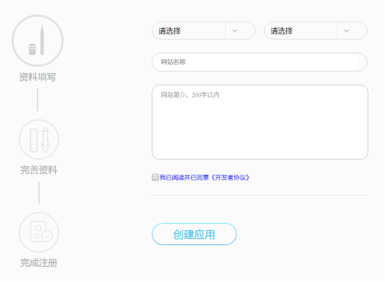 点击创建网站应用后,按要求完善信息: