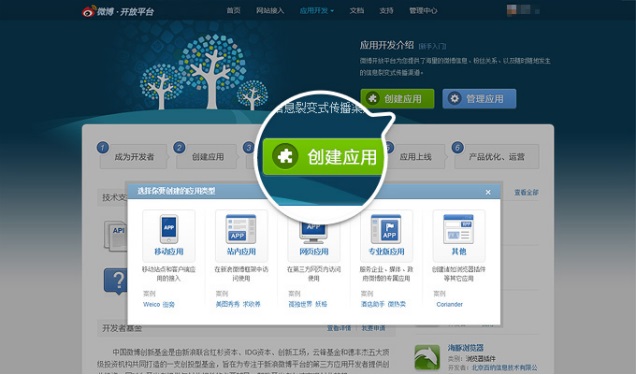 让你的应用在微博开放平台上运营,只需要通过简单的六个步骤:
