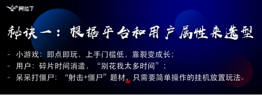 最后一个跟大家分享一下《呆呆打僵尸》,这个案例是我们一直在思考的这也是比较简单的,打僵尸就是放置的合成类的产品,为什么这种产品比较适合于微信这个环境?