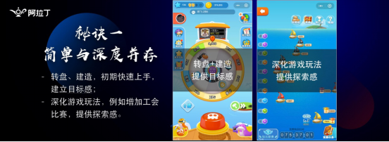 在我们产品中我们设计了很多关于群组的玩法,我们有海盗团队的任务,需要好友一起完成,包括海盗的CP系统,可以在游戏里面找到一个异姓的小伙伴跟你一起互相得到保护,互送游戏中的道具。包括游戏社区,社区内我们也强化运营在微信内把一些游戏中的好友转化为微信好友,这些手段都是有效的能够帮助我们的游戏运营人员提升游戏的核心产品数据。
