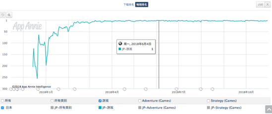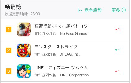 以这一年的成绩来看,《荒野行动》国内开启付费后一度跻身畅销前五,随后虽有所下滑但也能保持在畅销50名上下,截止发稿前位居第25名;另一方面,游戏在日本市场倒是收获颇丰,不仅有过登顶畅销榜的表现,还坐稳了前五的位置,并持续至今。
