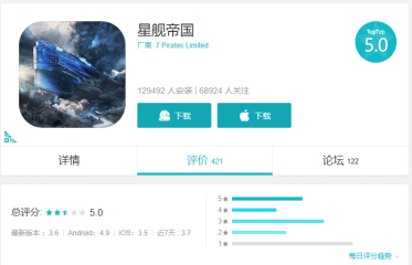 如果回到产品本身来看的话,玩家在App Store仅给出了3.5分,TapTap上也只有5.0分。作为一款策略游戏,《星舰帝国》采取了类似于COK玩法,并未跳出成熟的SLG游戏定式,不过以未来战争为题材驱使玩家建设星舰,倒和其他建城、造田的模式展现了一定差异。