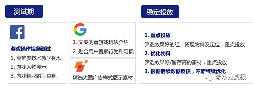 比如,对于某些游戏,上线1至3个月,可能是非常急需用户量的时间段,因此我们所做的事情就是不停地测试对比素材,帮助游戏拉到符合游戏调性的用户。