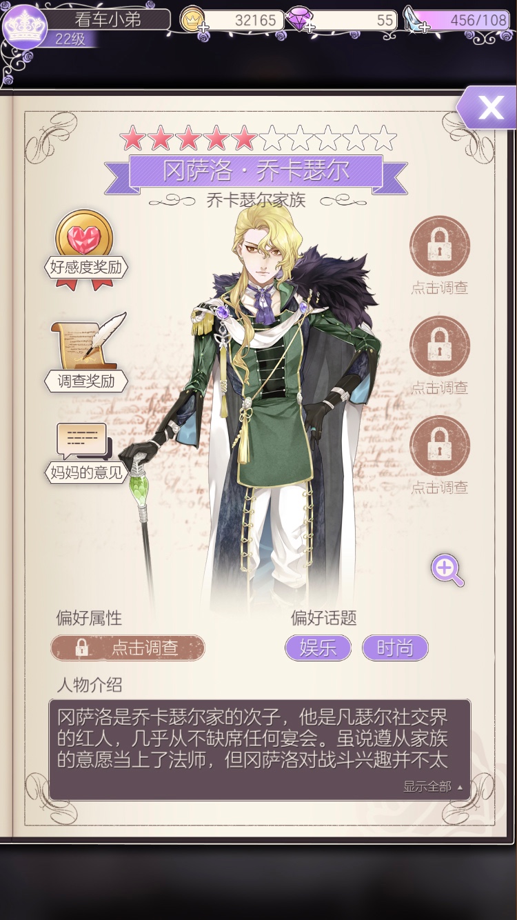 另外,剧情里最让葡萄君觉得体验新奇的可能就是这款游戏中的恋爱部分了。目前国内大多数主打女性向的产品都逃不开恋爱元素。圆舞曲中也有恋爱元素,但并不是故事的重点,在前三个章节里,你的养母还会严肃的提醒你不要早恋。