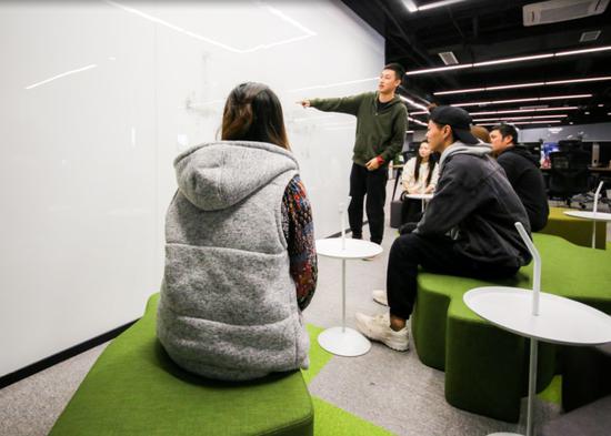 2018年10月11日,风际游戏的员工正在开会,讨论一款游戏的美术风格。摄影:润程