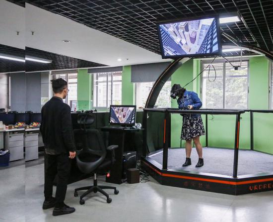 虚实梦境通过VR技术模拟高楼场景,让患者逐级暴露在一定高度,以脱敏的方式,治疗恐高症。摄影:润程