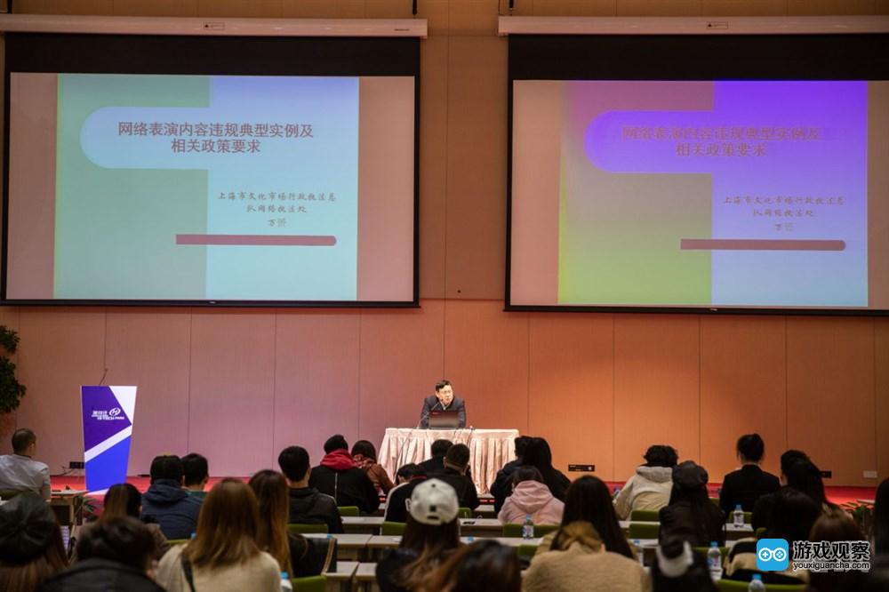 会上,上海市文化市场行政执法总队网络执法处万贇分析了互联网直播服务发展的现状,并对相关政策规定进行了详细解读和执法案例讲解,并针对2018年直播行业负面典型案例进行深入浅出剖析,强调政府在强化规范管理,维护传播秩序,促进表演(直播)行业健康发展方面的举措和要求。