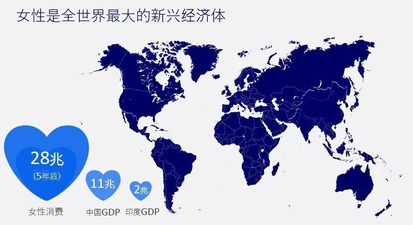 2017年女性的年均消费金额高达20兆美元,预计这一数字在5年后会攀升至28兆。