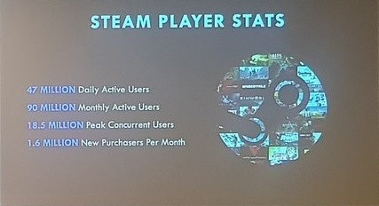 同样在10月下旬,在澳大利亚墨尔本游戏周展会上,V社官方分享显示Steam日活跃用户(DAU)已经达到4700万,月活跃用户(MAU)达到9000万,而该一数字已经超过索尼PSN用户总数。