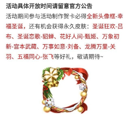 王者荣耀:圣诞花环活动本周开启,头像框、七款永久皮肤免费送