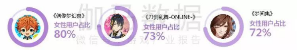 二次元游戏是女性向游戏市场的发展机会之一,如《梦幻偶像季》《刀剑乱舞-ONLINE-》《梦间集》等男性人设精美的二次元游戏产品,女性用户均达到较高占比。二次元游戏人物画风更易贴合女性用户的喜好,因此二次元游戏更易获取女性用户青睐,拉动女性用户的增长。