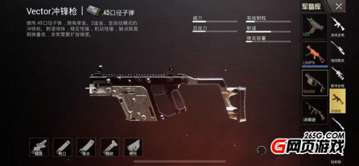至于Vector这把冲锋枪,相信很多玩家不到万不得已是不会用这把武器的。虽然说它的射速及威力都很强,但是载弹量实在是太少了,仅仅只有13发,打完整个弹匣也只能打死一个人,如果碰到另外一个人那就非常的被动了。同时这把枪的射程实在是太近了,超过50米基本就没什么威力了,所以即便是威力很大,也依旧不被大家所喜欢。