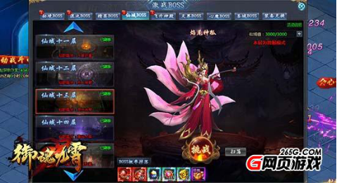 仙域中的BOSS击杀后会有一定的刷新时间,仙域层数越高,其中的BOSS越强大,击杀可获得的奖励也越丰厚。仙域BOSS为PK地图,该场景内可以自由切换PK模式。