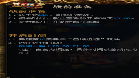 3.保住自己队伍的道士不死可以更快的支援,在圣域远征中除了道士可以加血,活动中没有任何东西可以加血,连药品也无法使用。