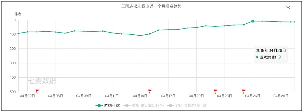 相对于一炮而红,《汉末》的状态更贴合焕发新春。这是一款老游戏,上线Android端之前,2017年起曾先后登陆PC与iOS平台,一年半载的时间累计8.6万份销量,Android版达到同一销量,只花了十余天。热度重燃,让iOS版的销量也跟着上涨——据七麦数据估算,在今年4月份,《汉末》仅iOS端的安装量就达到4.5万次,环比增长约465%。