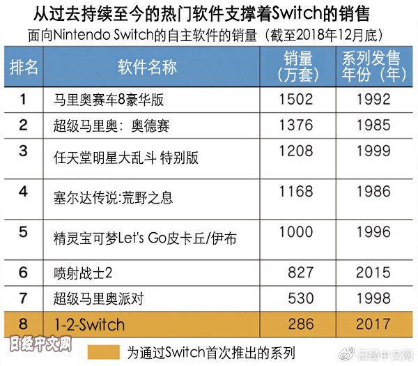 不过,自主软件的热门排行榜前列大多数仍是从过去持续至今的“经典”系列。推出新方案的Nintendo Labo和通过挥舞手臂来战斗的格斗游戏《ARMS》等游戏增长乏力。