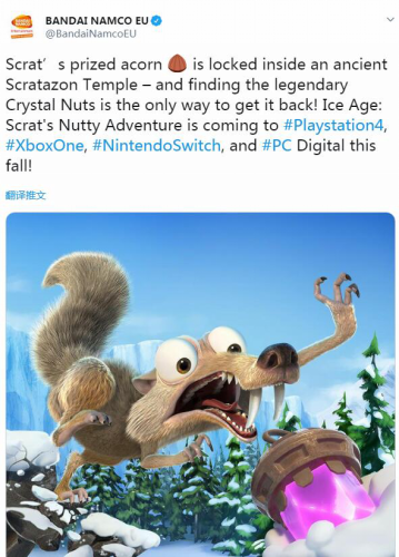 《冰河世纪:鼠奎特的坚果冒险》预计2019年秋季登陆PC、Xbox One、PS4和Switch。