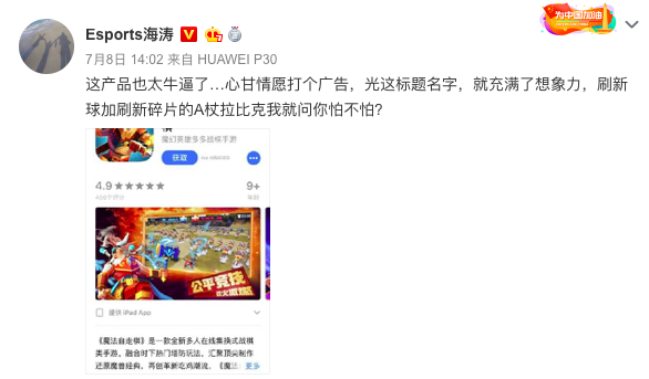 巨鸟多多合作方imbaTV的创始人海涛曾发了一条微博,调侃称“这产品也太牛逼了,心甘情愿打个广告,光这标题名字,就充满了想象力……”随着越来越多媒体和大V的曝光,《刀塔霸业:云顶自走棋》的“外衣”被扒开后,它的热度也很快凉了下来。当然在这背后,反映了手游市场长期以来的乱象——山寨、蹭热度的产品横行,游戏厂商用极低的操作成本就能取得预期的收益,对于其它自走棋手游来说将面临不小的挑战。