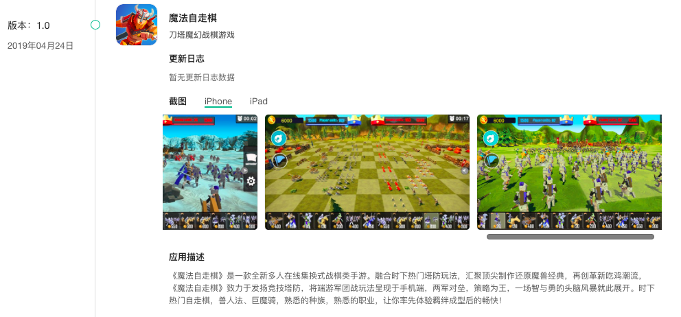 七麦数据显示,《刀塔霸业:云顶自走棋》在App Store上的曾用名是《魔法自走棋》,最早于今年4月24日上线,其开发者为YUELEI WANG。