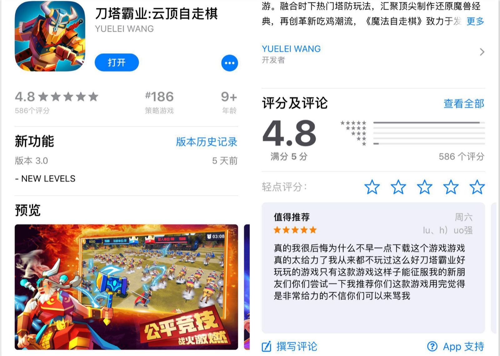 单从名字上来说,它融合了刀塔霸业、云顶之弈、自走棋等关键字,噱头十足,大有集各家之所长的意味。再来看App Store的评分,它甚至有着高达4.8的分数。